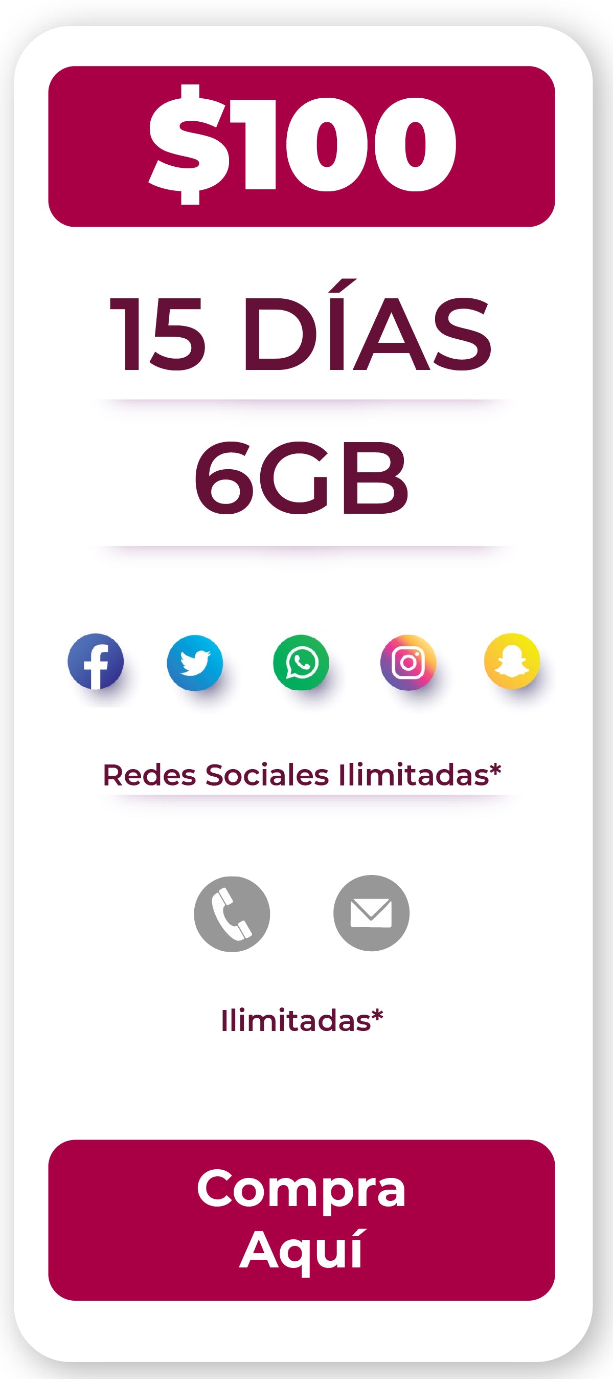 Obtén 6 GB para navegar durante 15 días, además tus redes sociales incluidas más llamadas y SMS.